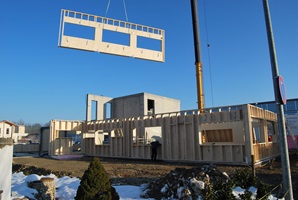 - Wände in kombinierter Holzrahmenbau und Brettsperrholzbauweise